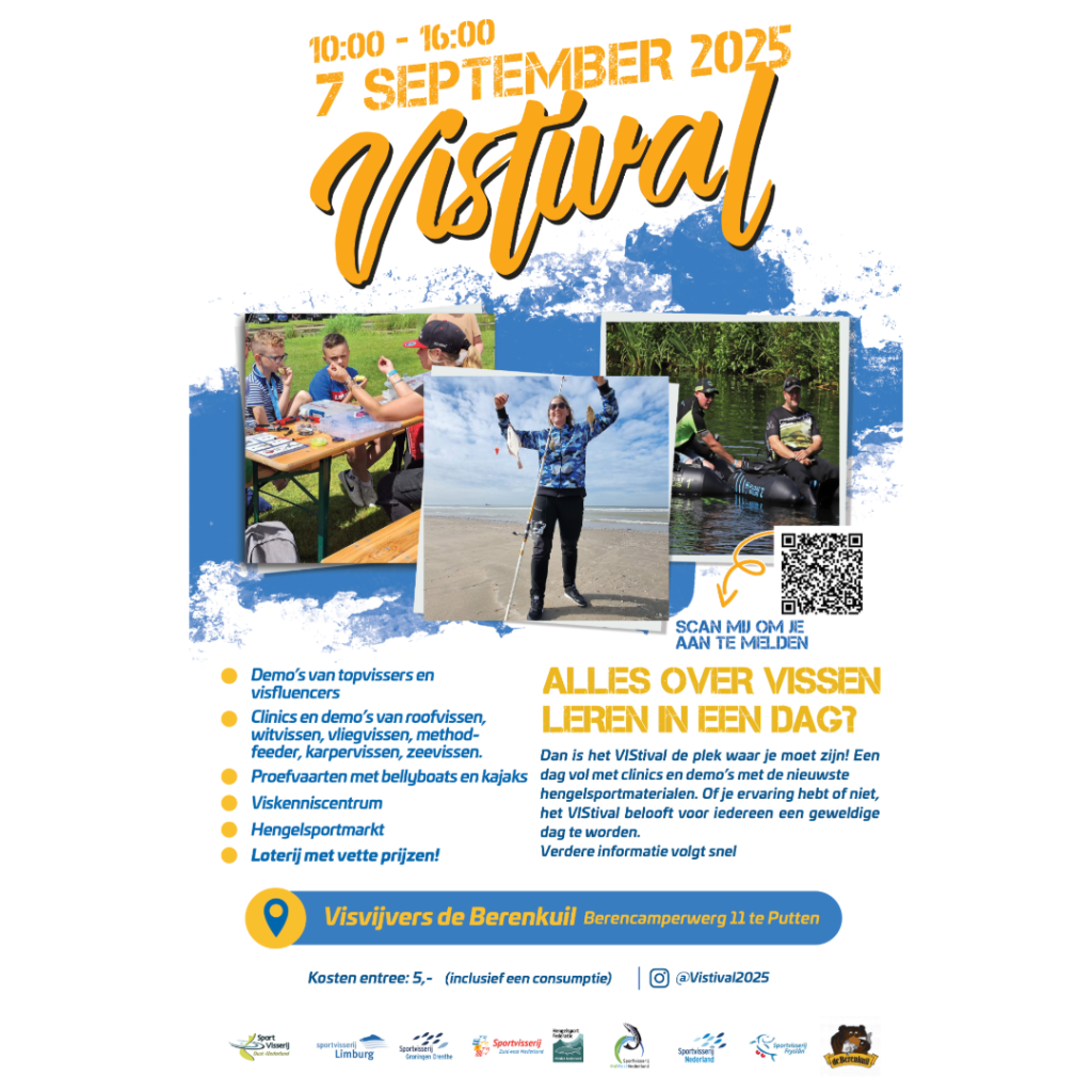 Op zondag 7 september 2025 vindt de tweede editie van het VIStival plaats. Een gezellig en uniek visevenement voor jong en oud bij Visvijvers De Berenkuil in Putten. Koop nu je entreekaart en maak je klaar voor een dag vol actie, kennis en visplezier voor elke sportvisliefhebber!