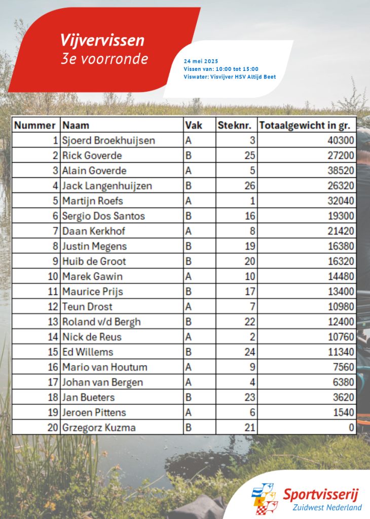 Uitslag 3e voorronde ONK Vijvervissen – Altijd Beet Schijndel