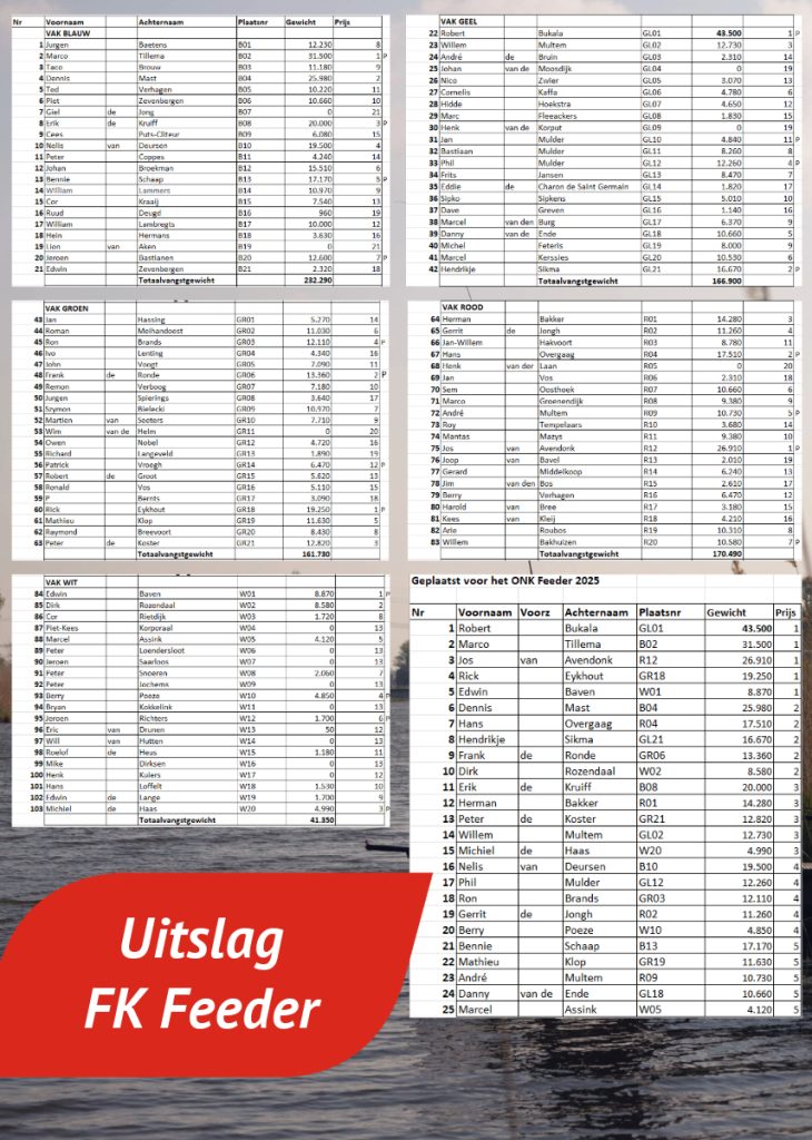 Vakken A en B zijn de 55+ mannen en de vakken C en D de -55 mannen. De oranje gemerkte cellen (60 % van de vak deelnemers) zijn degene die aan het Open Nederland Kampioenschap Kust mogen deelnemen later dit jaar.